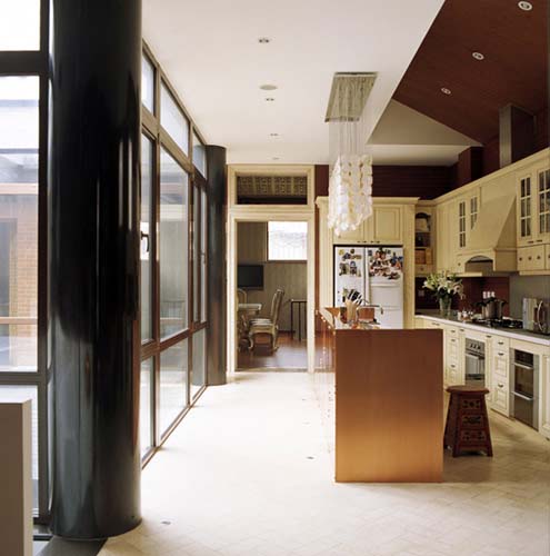 改建后,四合院增加了一整層4米挑高、由影音室、茶室、書房、保姆房、客房、中央設備室等功能區域組成的地下空間。地上一層則是主要生活區,包括廚房、主臥、餐廳、兒童房以及分割出來的車庫。整座四合院內建有現代的衛浴間,并安裝了各自獨立的智能安防系統、中央新風及吸塵系統。設施先進,一應俱全。
